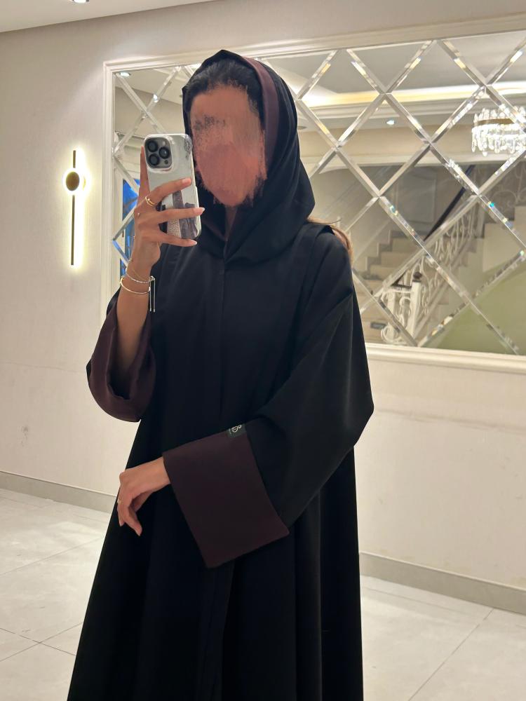 طول العباية يؤخذ من الكتف الى أسفل الكعبين (من الأمام)